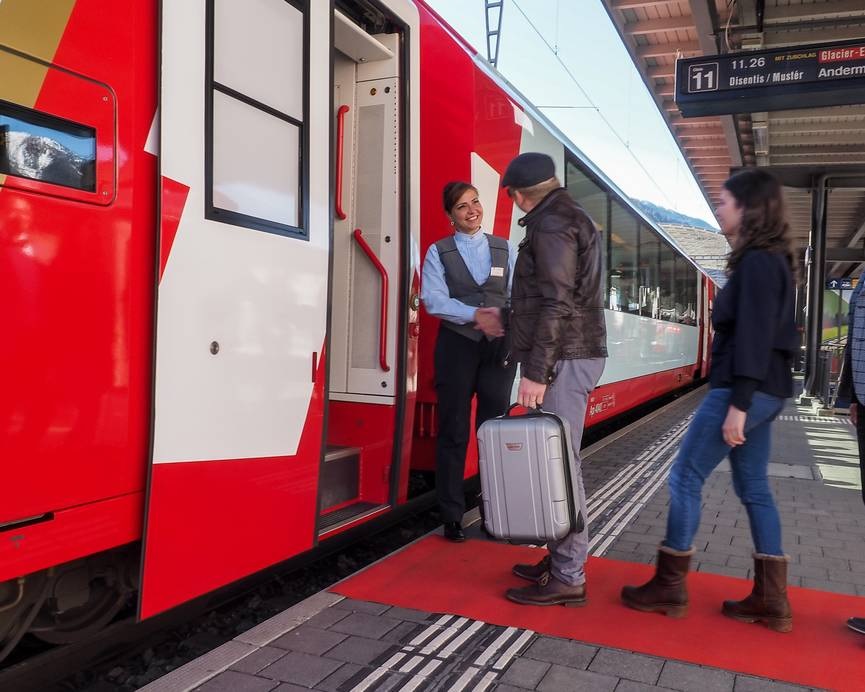 Zermatt(始発駅/終着駅) ⇔ StMoriz間(終着駅/始発駅)間のみでの利用。途中駅のBrig駅やAndermatt駅やChur駅などで乗り降りできません。