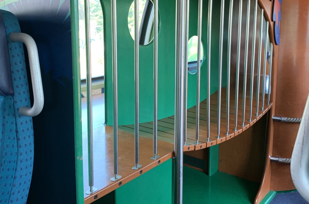 この機材のほとんどの編成に滑り台などがあるプレイルームがある車両が連結されています。