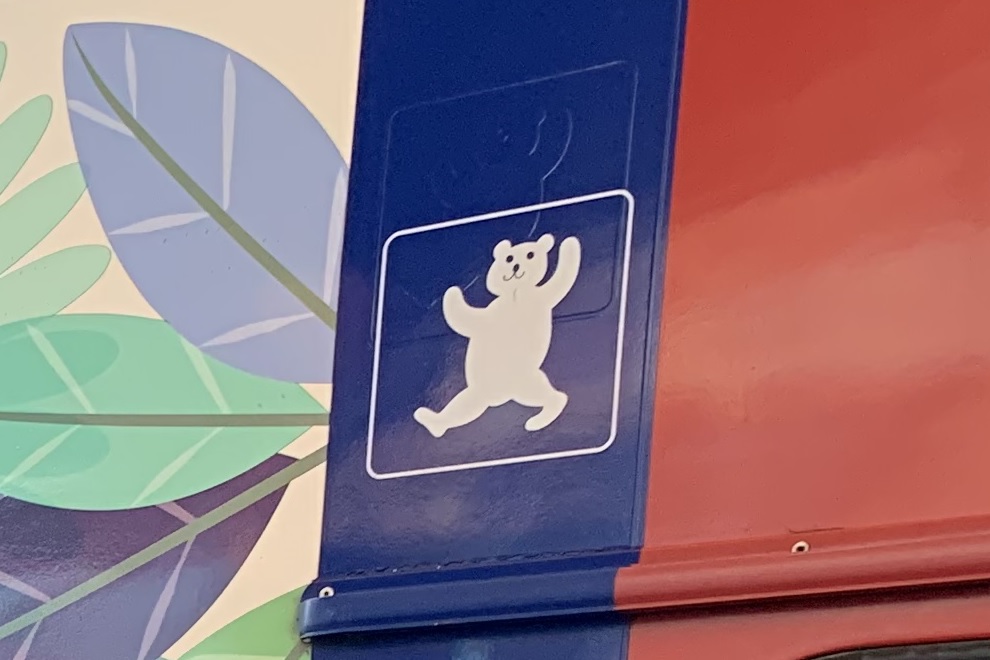プレイルームのある車両の外側に表示されているマークは、熊さん。