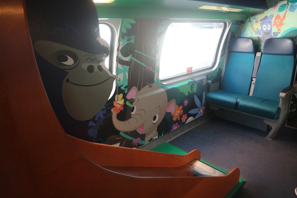 ヨーロッパ鉄道チケットセンターでは事前に子供が遊んでいるプレイルームのすぐそばの座席を予約することができます。