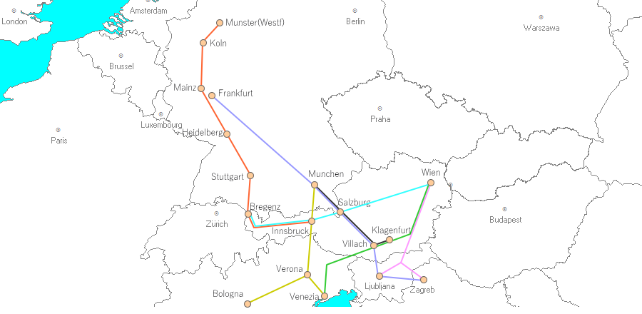 ※Munchen - Venezia/Bologna路線 |