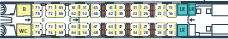 | 新型以外のユーロスターは、「旧型機材」の座席配置で予約され、当日のチェックイン時にそのまま「旧型機材」で運行されるか、「リニューアル機材」に機材変更されるかが決定。 |