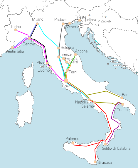 日本人観光客がよく利用するのばアッシジやシチリア島への路線。