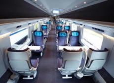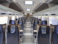 すべてオープンサロンタイプで通路挟んで1席+2席の座席配列。ETR470型タイプは、全ての席がテーブルを挟んで対面シートになっています。ETR610型タイプは、テーブルを挟んだ対面シート以外に、一方向に向いた座席の列があります。