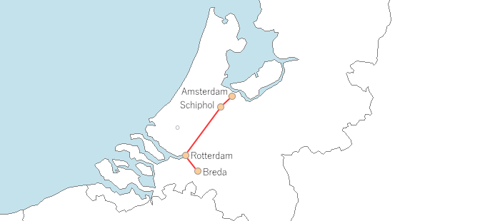 | このICDは、一部の区間(Schiphol-Rotterdam)で追加料金(EUR2.30)が発生するという珍しいルールがあります。 |