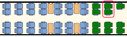 輸出制限されており下記の緑色の3席しか事前予約できない。 |