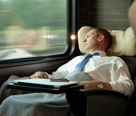 豪華な革張りの座席でふくらはぎの下までサポートするフットレストも完備。折り畳みテーブルが備え付けられていてWiFiサービスを利用してノートパソコンで作業ができるようになっております。電動リクライニング機能もあります。
