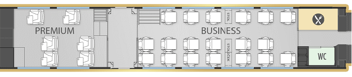 プレミアム座席ほど豪華ではありませんが、革張り座席です。WiFiサービスもありますのでノートパソコンで作業も可能。 飲み放題ではありませんが、ホットドリンクと簡単な軽食サービスもあります |