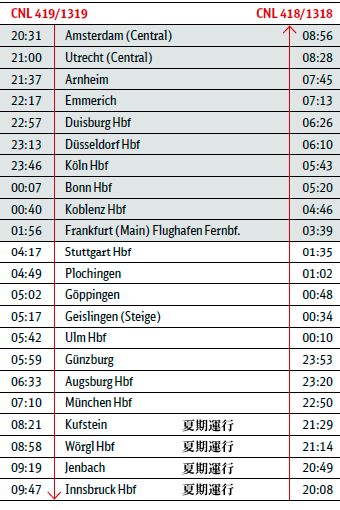 ヨーロッパ鉄道チケットセンター以外の会社で購入する場合は、朝食サービス及び寝台車両に適用される等級が違う場合がありますので購入する会社で必ずご確認ください。 |