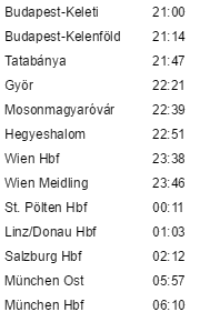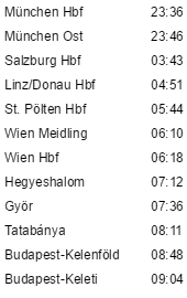 クシェット車両の 等級 と 朝食サービスの有無 はヨーロッパ鉄道チケットセンターで購入した場合のみ適用されます。