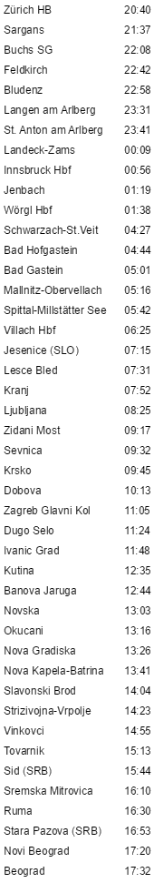 クシェット車両の 等級 と 朝食サービスの有無 はヨーロッパ鉄道チケットセンターで購入した場合のみ適用されます。
