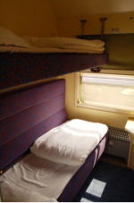 | 寝台車両は、上段・中段・下段の3つのベッドが設置されてます。上段と中段を折り畳むと「一人部屋」、中段だけを折り畳むと「二人部屋」として利用。 |