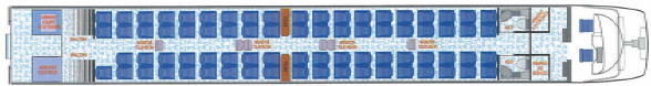 オープンサロンタイプの通路挟んで2席+2席の配置。車両の中心に1か所だけテーブル付座席があります。座席は固定されていてJRの新幹線のように回転しません。 |