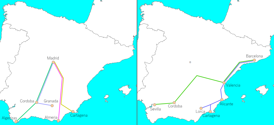 | スペインは高速線の線路の幅と在来線の線路の幅が違うのですが、タルゴは自らの車輪幅を変更する機能を使い乗換えなく高速線と在来線の移動が可能。 |