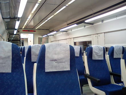 どの機材もオープンサロンタイプです。通路挟んで2席+2席の配列。スペインはフランス同様に高速化を推進している鉄道会社ですので、このMDはのんびり移動する昔ながらの各駅停車の旅を味わえます。