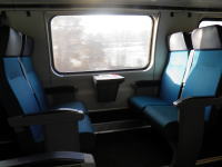 テーブル付四人掛け座席+通路挟んで二人掛け座席を確保すること |