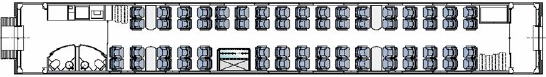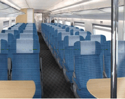 ビジネスクラスと呼ばれ1号車と2号車の2両連結されています。革張りシートでスリッパ・アイマスク・食事料金がチケット料金に含まれています。ノートパソコン用のソケットもあります。新聞も無料サービスになります。Wifiも無料。