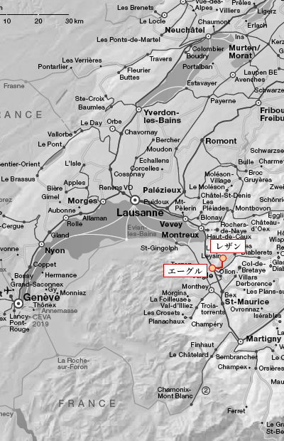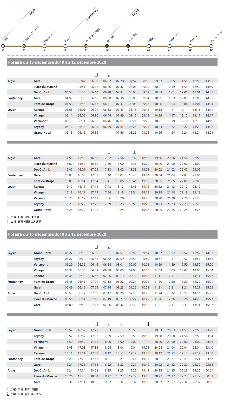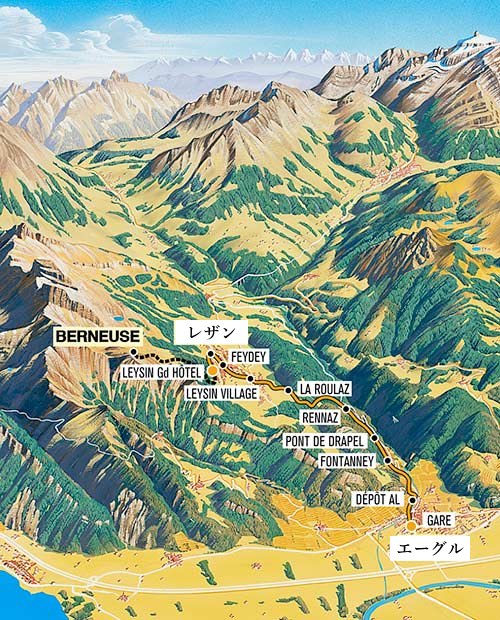 麓の町エーグルと高台にある高級リゾート地のレザンを結ぶ登山鉄道。