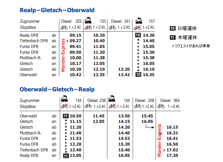 時刻表(2021年06月24日~2021年10月03日の木曜~日曜)