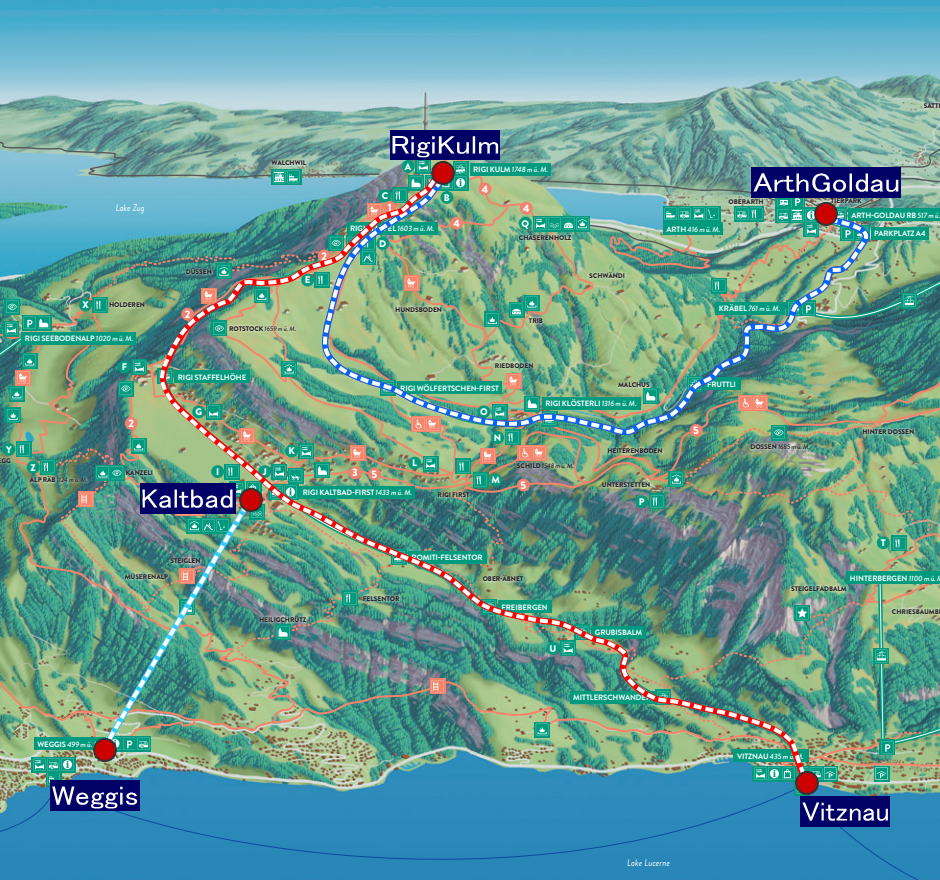 | 山頂のリギクルムへはアルトゴルダウ/ウェッジス/フィッツナウの3方向からアクセスが可能。 |