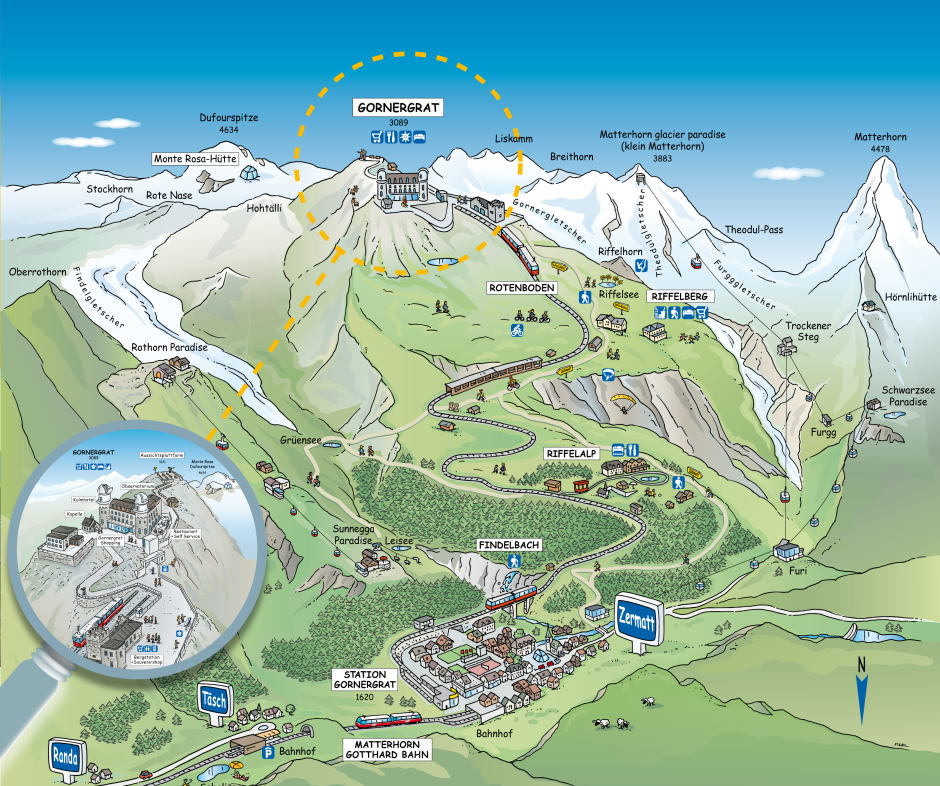 ツェルマット地区での絶景ポイントであるゴルナグラードまで行く登山鉄道。