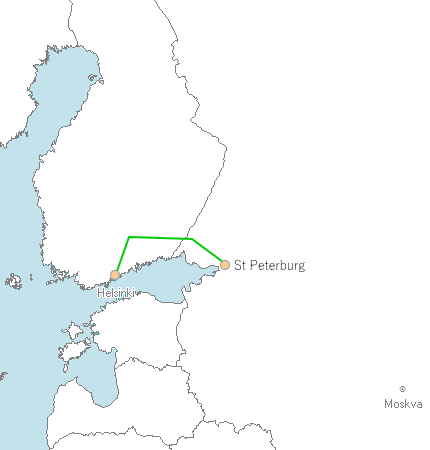 | 今まで約6時間かかっていたHelsinki--StPetersburg間が約3時間半で結ばれます。 |