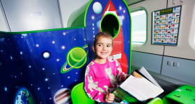 子連れの旅の場合は、子供のプレイルーム近くの座席を確保すると安心。 |