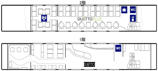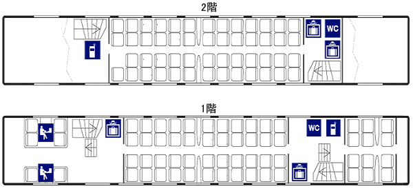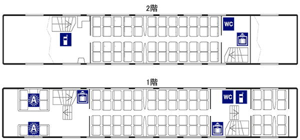 2等通常座席は1階建てタイプと2階建てタイプがあります。