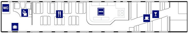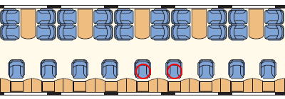 1等座席は2階建て車両のEDBタイプの2階席に設置されています。